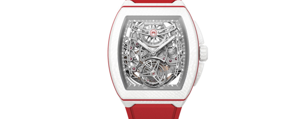 O Bianchet Ultrafino Monaco combina a arquitectura desportiva da marca com um calibre esqueletizado ultraplano de alta performance, alojado numa caixa em titânio ou carbono com proporções contemporâneas e perfil reduzido, mantendo elevada rigidez estrutural. O movimento automático esqueletizado apresenta frequência de 4 hz (28.800 alternâncias/hora), cerca de 60 horas de reserva de marcha e rotor periférico para optimizar a espessura total, permitindo uma caixa com espessura inferior a 9 mm. A estrutura esqueletizada evidencia pontes anguladas e acabamentos técnicos, enquanto o mostrador integrado privilegia legibilidade com marcadores aplicados e ponteiros luminescentes; a resistência à água ronda os 50 metros e a bracelete integrada reforça o carácter ergonómico do conjunto. Mais do que uma simples nova cor, esta versão reafirma a engenharia ultrafina da Bianchet aliada a uma execução contemporânea e técnica.